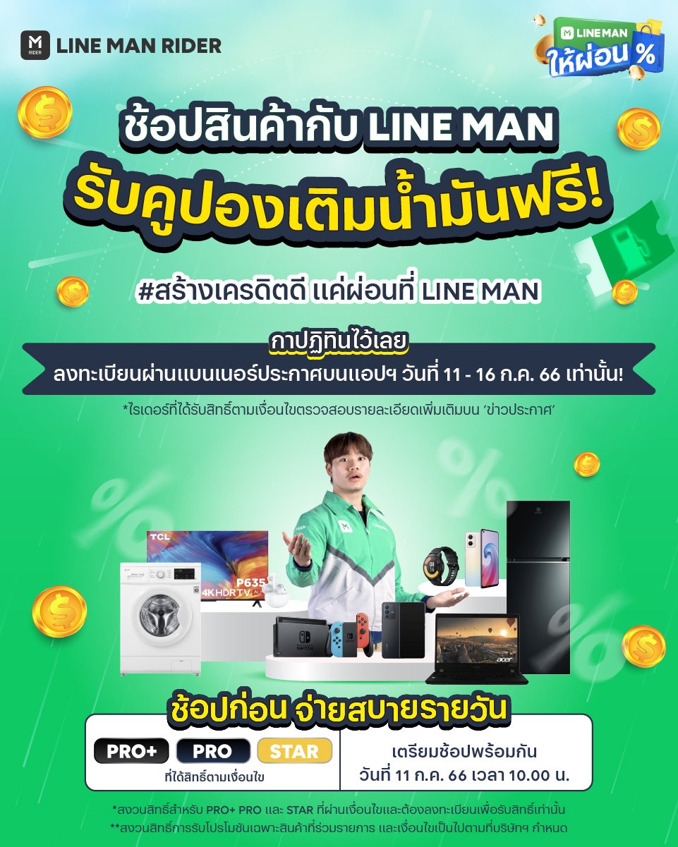 ลงทะเบียนผ่านแบนเนอร์ประกาศบนแอปฯ LINE MAN RIDER วันที่ 11-16 ก.ค. 66