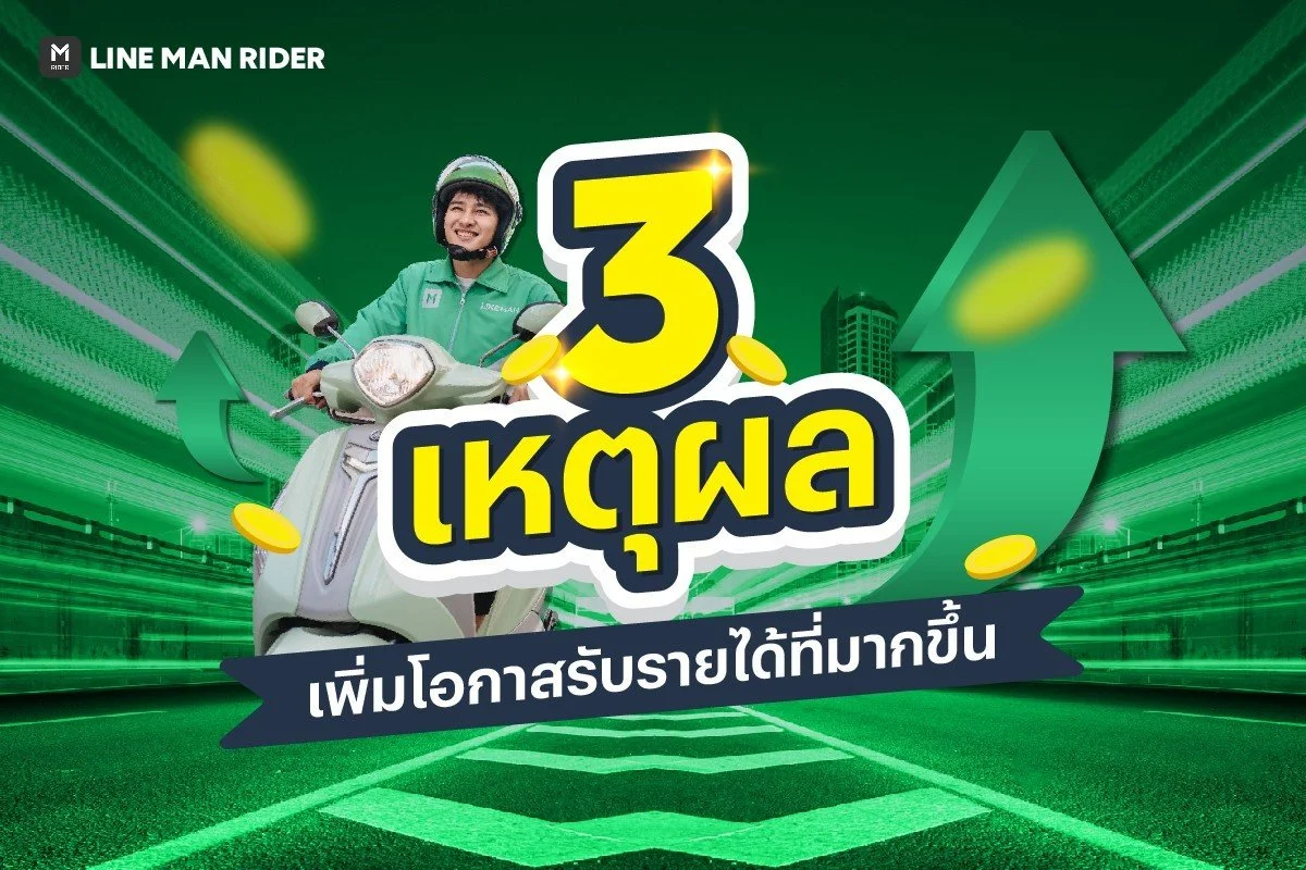 1.รับงานได้ หลากหลายรูปแบบ ทั้ง LINE MAN FOOD, LINE MAN MART, LINE MAN MESSENGER