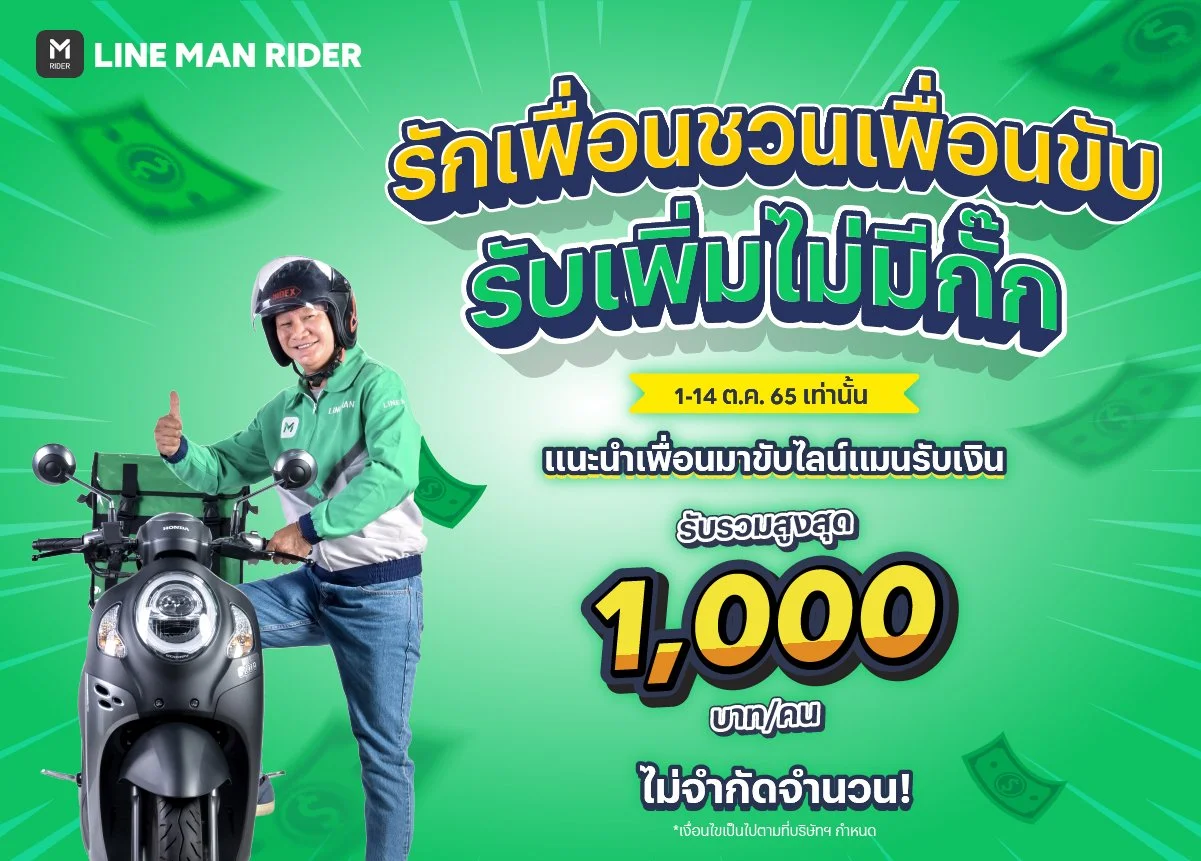 เริ่มแนะนำเพื่อนมาเป็นไลน์แมนไรเดอร์ได้แล้ววันนี้