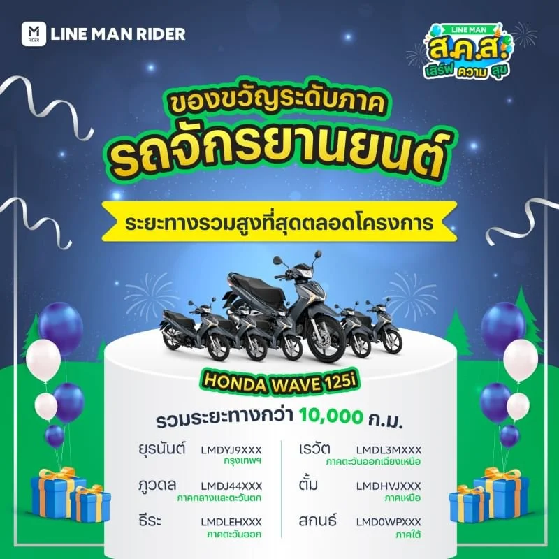 ขอแสดงความยินดีกับผู้ที่ได้รับของขวัญ และขอขอบคุณไรเดอร์ที่ร่วมเป็นส่วนหนึ่งของกิจกรรมเสิร์ฟความสุขตลอดปีใหม่